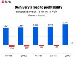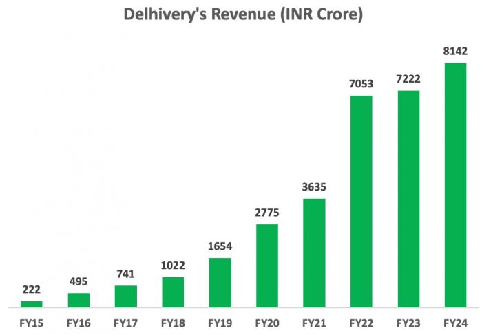 In the third quarter of FY24, Delhivery achieved profitability. Delhivery disclosed a Profit After Tax (PAT) of Rs 12 crore during this period. It witnessed robust growth across its Express Parcel and Part Truckload (PTL) segments thanks to the festive season having boosted revenues. However, Delhivery reported a loss of Rs 69 crore in Q4 FY24. They ended the year with a net loss of Rs 250 crores for the year FY24.